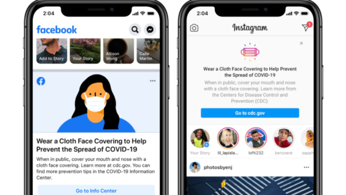 “With the rise in COVID-19 cases in the US, we’re putting an alert at the top of Facebook and Instagram to remind everyone to wear face coverings and find more prevention tips from the CDC in our COVID-19 Information Center,” the company wrote in a Thursday blog post.
